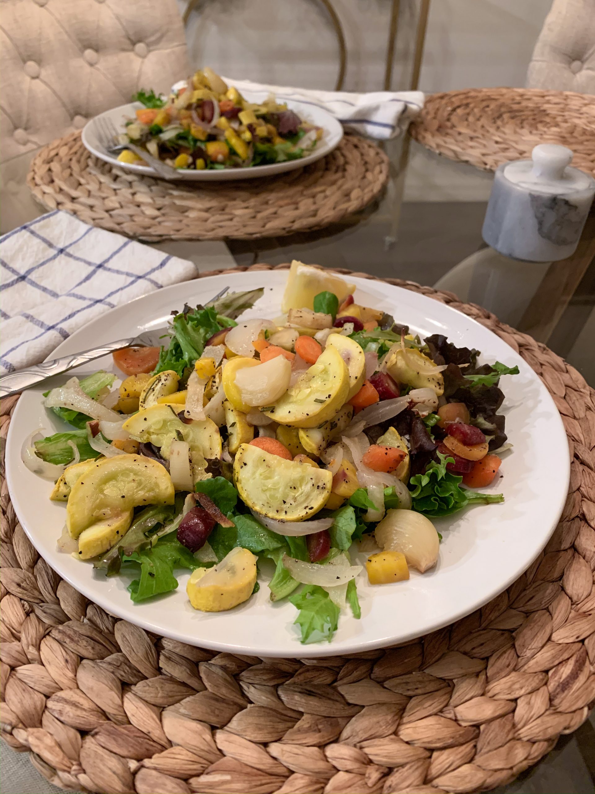 Because of our work schedules, Matt and I are rarely able to cook dinner together. We’ve been taking full advantage and making some of our favorite meals during our time at home. Lots of pasta, Beyond Burgers, and pizza! And since we’re trying to cut down on visits to the grocery store, we like to batch cook meals and make enough to have leftovers the next day. I’ve been trying to share some of our meals on my IG Stories, too!